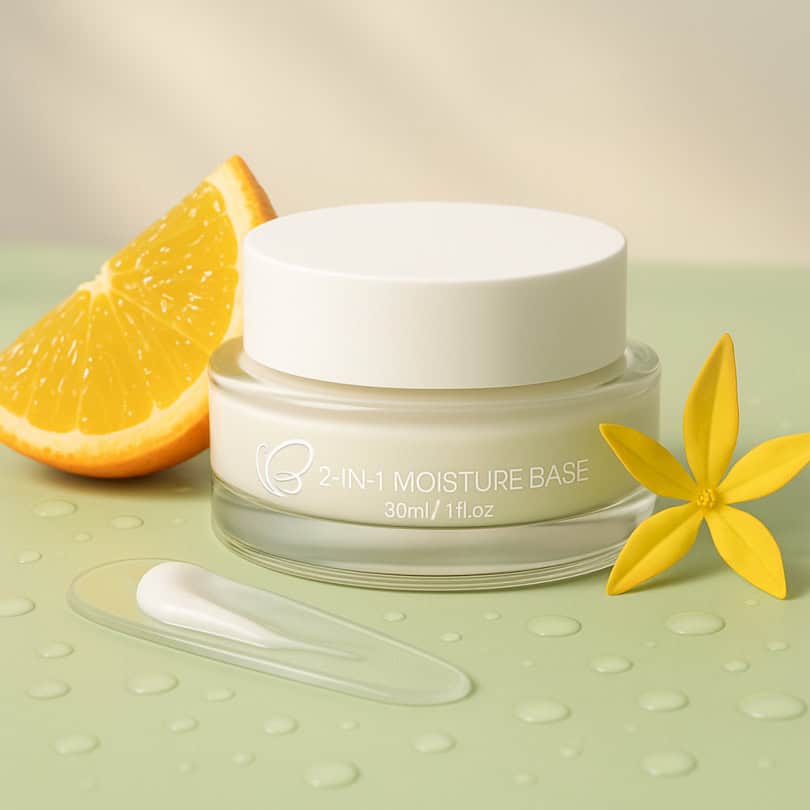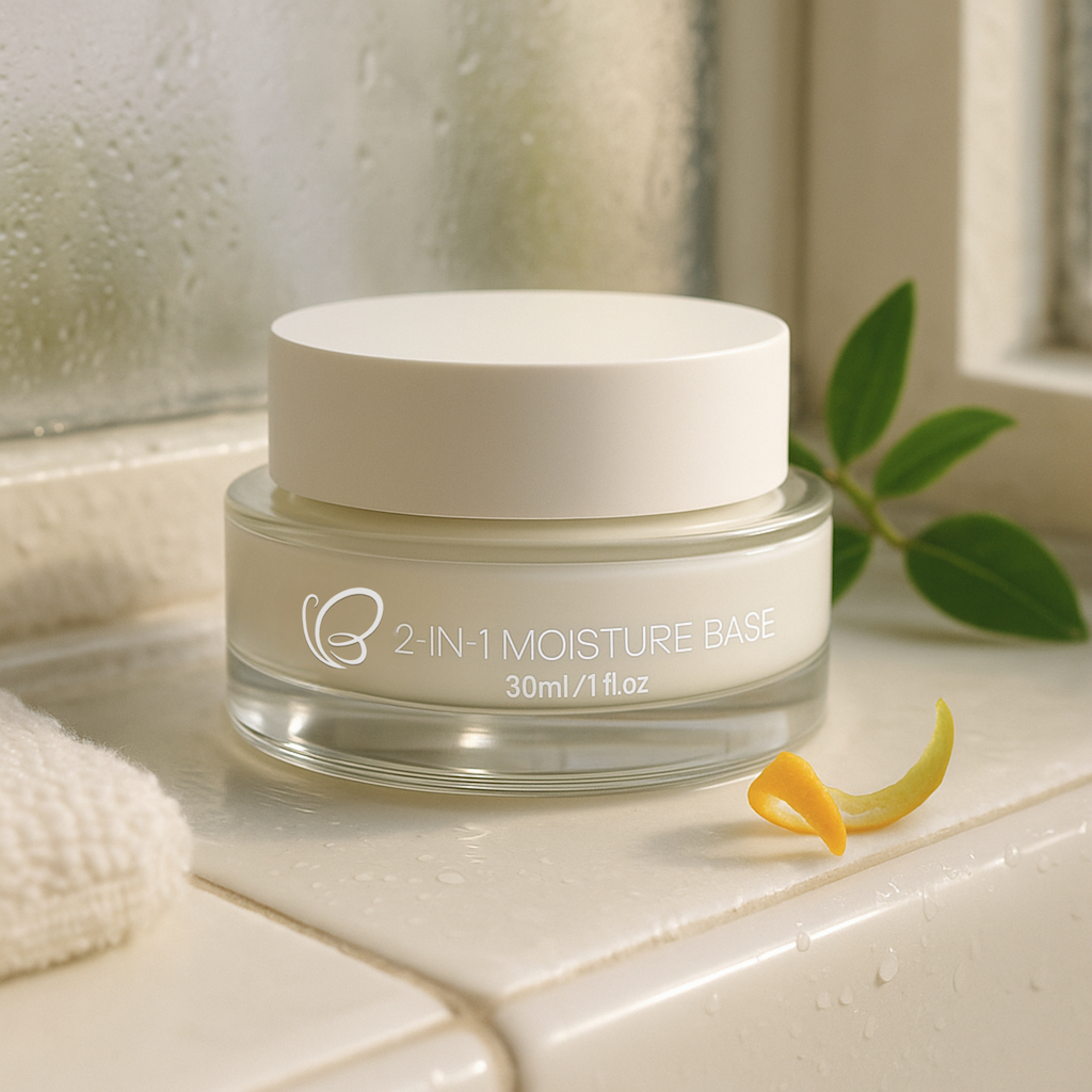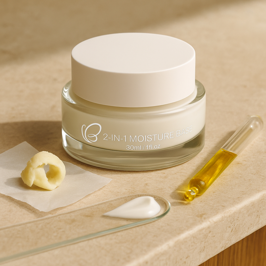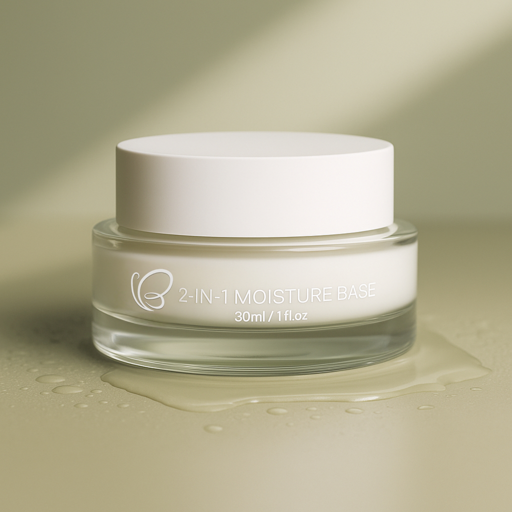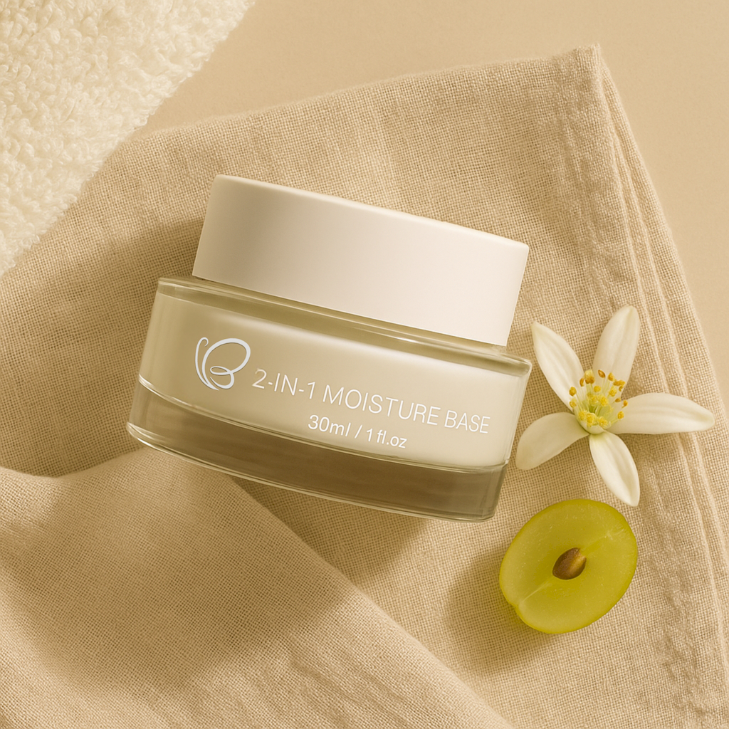 Our 2-in-1 Moisture Base, is a moisturizer and makeup primer in one. To help moisturize, nourish, plump, and prep the skin creating a beautiful base for makeup. With the help of Shea butter, Grapeseed oil, and other skin-nourishing ingredients your skin will look and feel amazing ready to apply your favourite foundation.